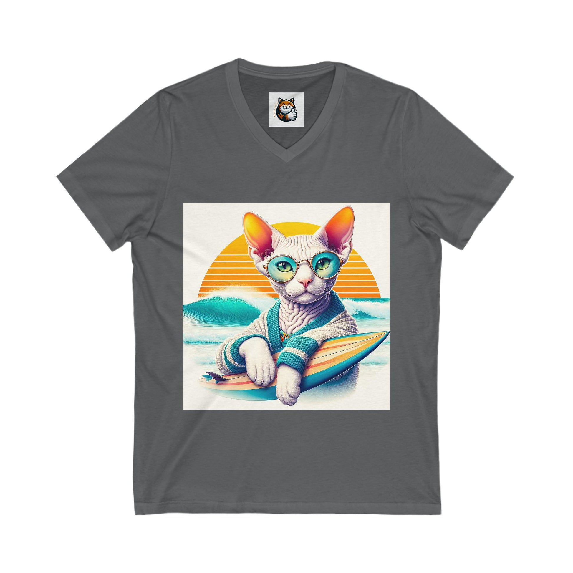 Devon Rex surfing baby Unisex Jersey Short Sleeve V-Neck Tee
