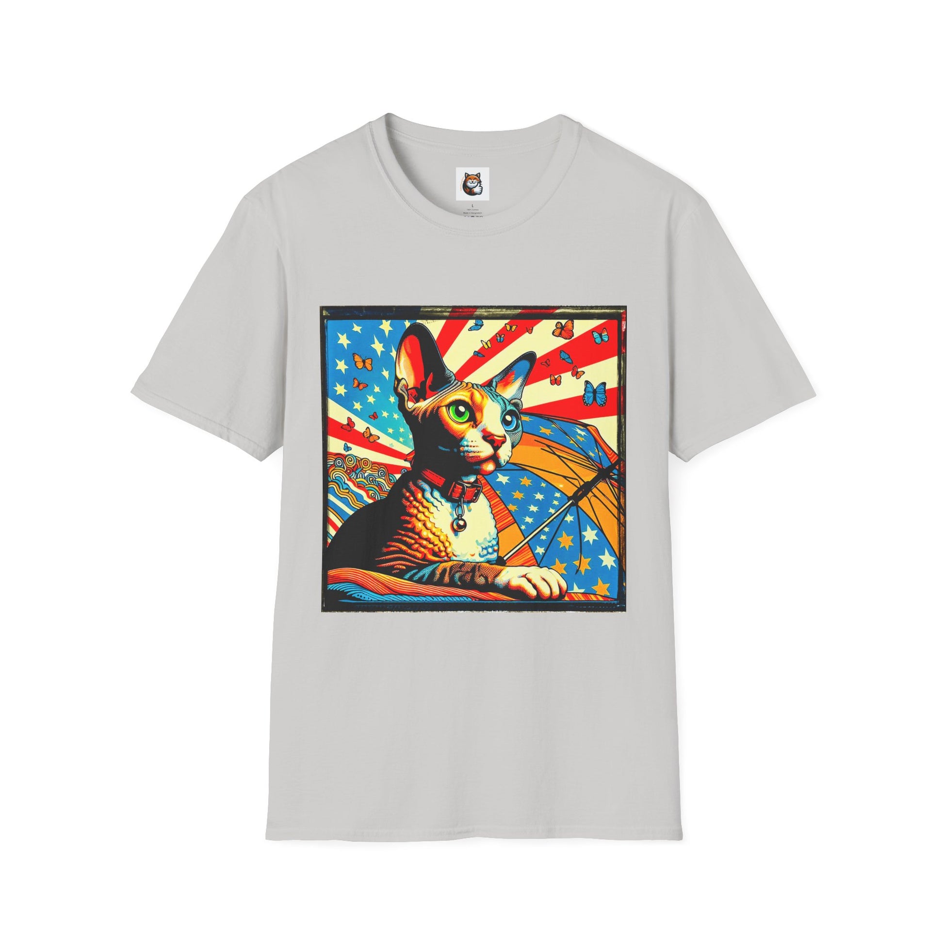 Devon Rex Cat American flag Softstyle T-Shirt