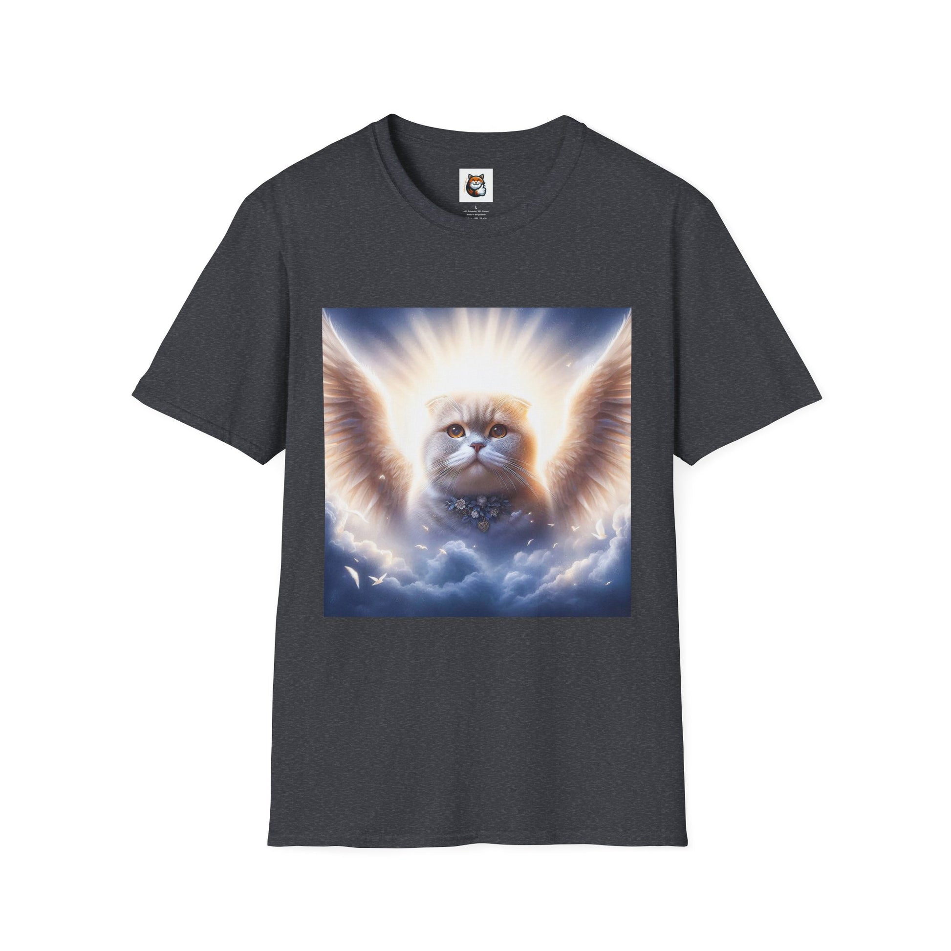 Scottish Fold cat T-shirt, softstyle unisex tee, cat lover apparel, Scottish Fold cat gift, feline-themed T-shirt, cute cat T-shirt design.